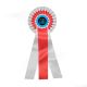 Personalizzazione con adesivo nel centro. La coccarda ha nel retro un fermaglio lungo per poter essere facilmente applicata.